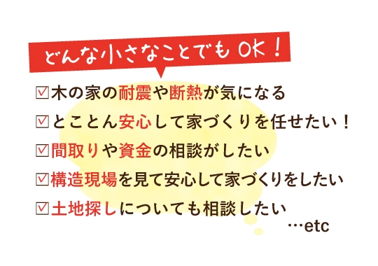 家づくりに関するお悩みであればどんな些細なことでもご相談下さい。