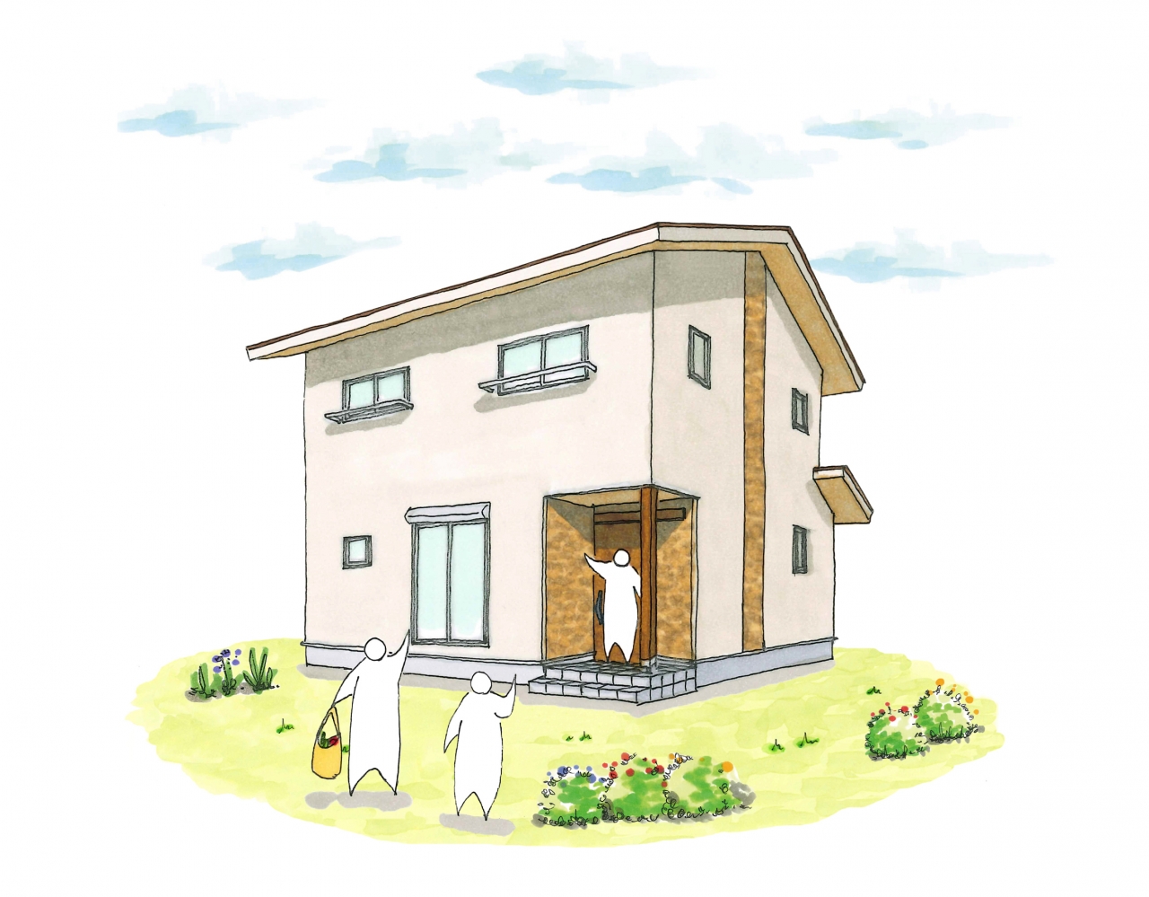 ●ブラウンのラインがおしゃれなナチュラル外観