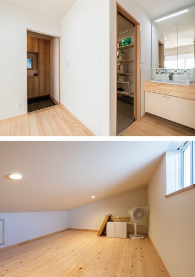 子どもが寝た後に洗濯機が回せるようになりました。また、マンションに住んでいるときは玄関のドアを開けて換気していたので、玄関のロール網戸が便利です。自転車もスロープからそのまま土間に入れることが出来て、急な雨の時には土間でいろいろ対応できるのが良いです。