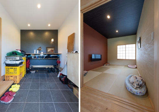 4.土間…和風の家をイメージ。入った時にインパクトがほしく広めに設けました。