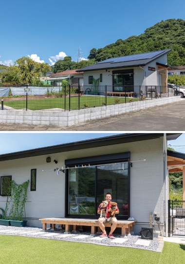 以前は集合住宅で犬2匹と暮らしていたので、広い庭がほしいと思い、新居には設けました。ストレスがなくなりました。ひのきの床が気持ち良いのか、犬たちも床で寝るようになりました。