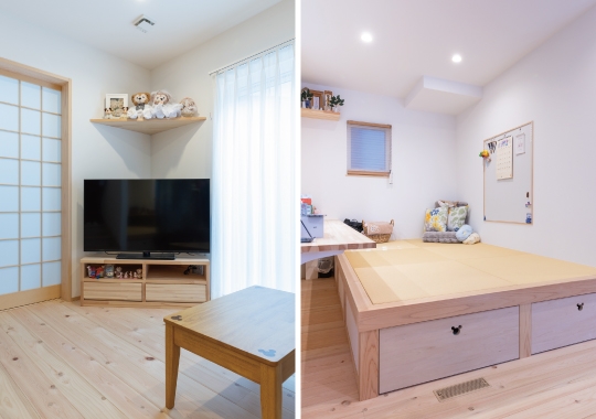 その中で、最後に見学した福工房の展示場に入った瞬間、「自分たちの住みたいイメージはこれだ!」と思いました。特に小上がりには一目ぼれでした。当日は近くで開催されていたお客様邸の完成見学会も見学しました。そのあとも、福工房の他の展示場や見学会へたくさん足を運びました。スタッフさんの対応が良く、押し売りのような営業をしてこないところにも好感が持てました。
