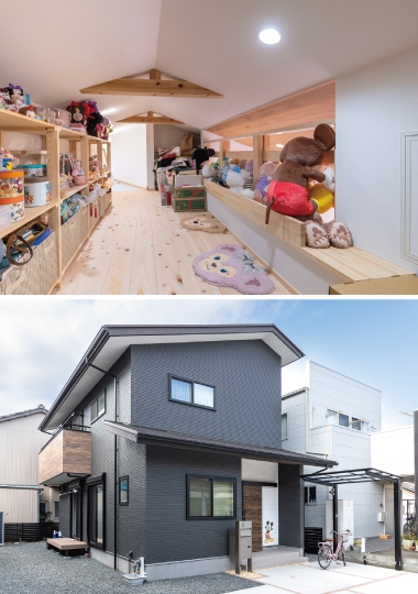 他にも、小上がり、小屋裏収納、吹き抜けリビング、2階トイレ、キッチン、玄関土間など全て気に入っています。